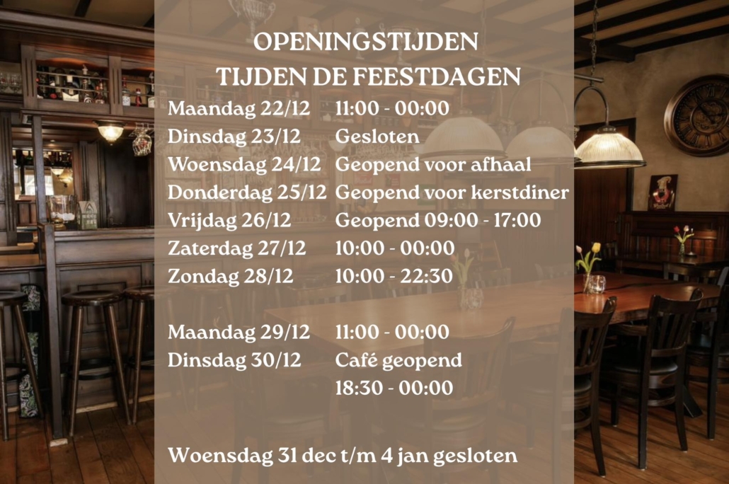 Rondom de feestdagen zijn onze openingstijden anders dan je van ons gewend bent: